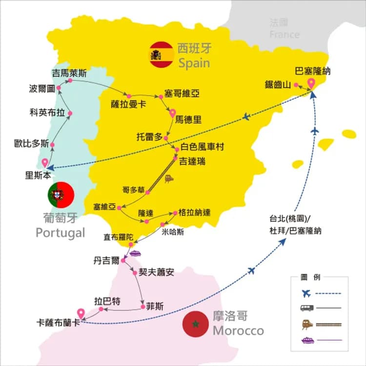 - 參加 西葡團體旅遊需確認護照和簽證有效、攜帶個人用品和藥品與衣物等。