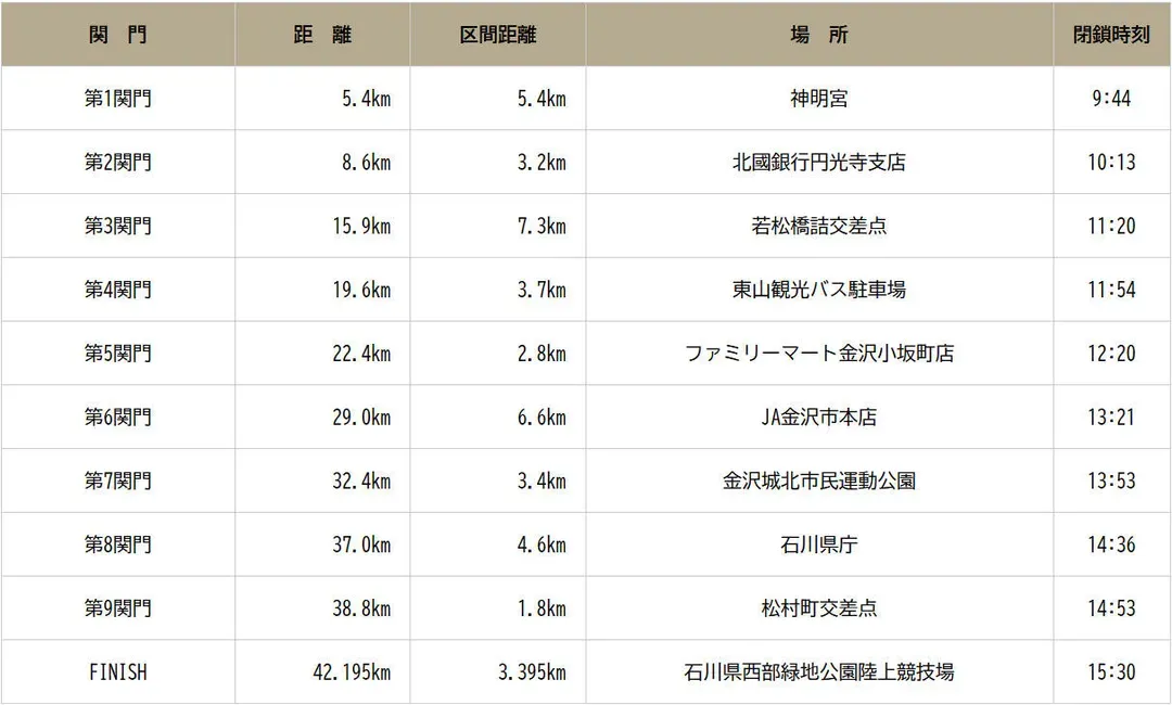 - 比賽當天(10/25),將有免費接駁巴士往返於終點區域石川縣西部綠地公園(工業展覽館4號館前)和金澤站(金澤港(西口))或片町站(起點附近)。
