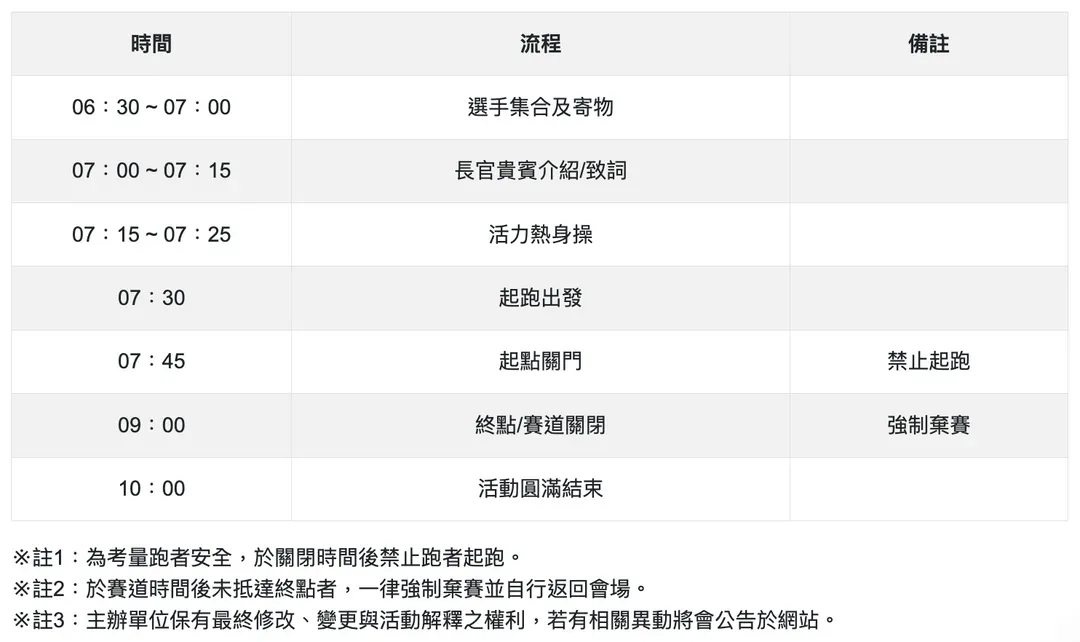 - 起跑關門: 08:00
