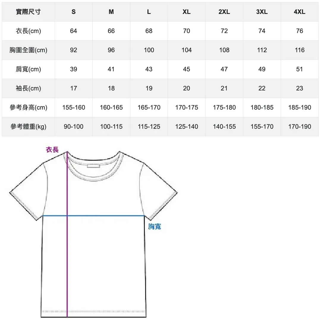 - 紀念 T-shirt 為通用版型(不分男女版),尺寸誤差值約 ±3cm,顏色請以實物為主。