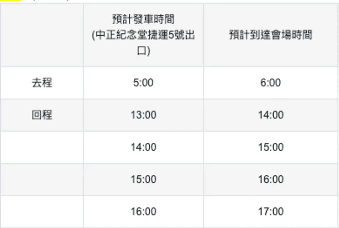 5.請搭乘您所選購時段的接駁車,如錯失選購時段的接駁車,將採取候補搭車,候補搭車以現場接駁車狀況彈性調整,以選購該時段的參賽者為優先。