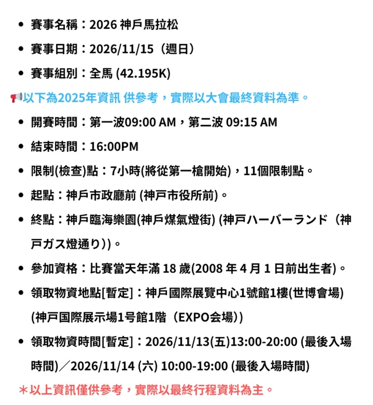 ▶ 參加【2026神戶馬拉松】參賽權+超值精選2晚住宿需要準備什麼?