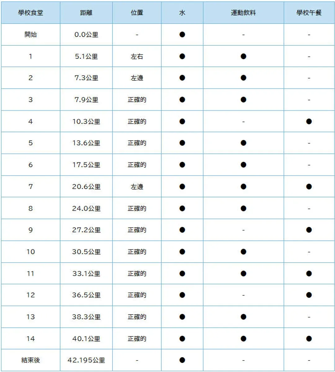 - 若配咖啡因能量膠,建議放在跑程後半段(半馬最後7K左右,全馬30K後),可提升專注力與緩解疲憊,不要全程使用。