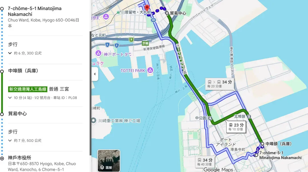 - 起點:神戶市政廳前 (神戸市役所前)。