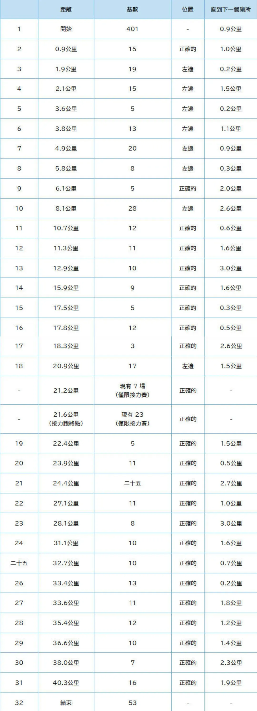 - 預計5公里處的廁所會比較擁擠。