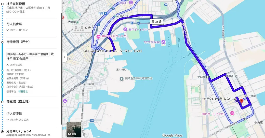 - 終點:神戶臨海樂園(神戶煤氣燈街) (神戸ハーバーランド(神戸ガス燈通り))。