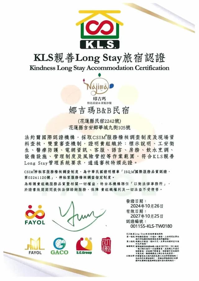 ▶ 娜吉瑪民宿(花蓮縣民宿2242號) 的入住和退房時間?