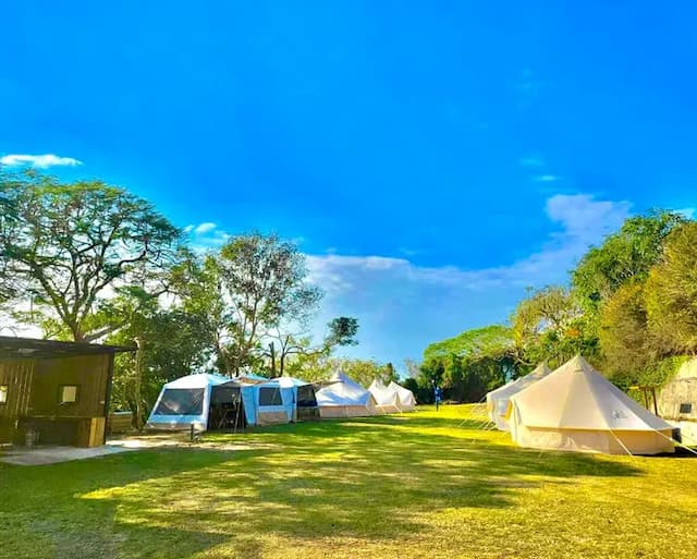 - 懶人露營: 露營區已經搭好帳篷或者準備好露營屋,提供床、桌椅、洗漱用品、等基本設備。有些還會提供一泊二食或者烤肉等服務,很適合新手或帶老人/小孩的旅客。