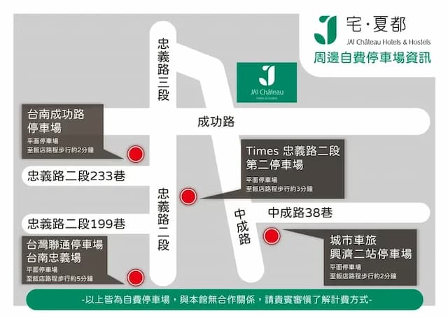來到 台南市 自駕遊,選擇入住 宅.夏都 可先參考旅宿頁面的「服務與設施」、查看「交通服務/設施」項目,了解 宅.夏都 是否有提供免費/付費停車場、周邊是否有其他停車場等相關交通服務資訊。若「服務與設施」項目中未顯示,表示未提供此服務。