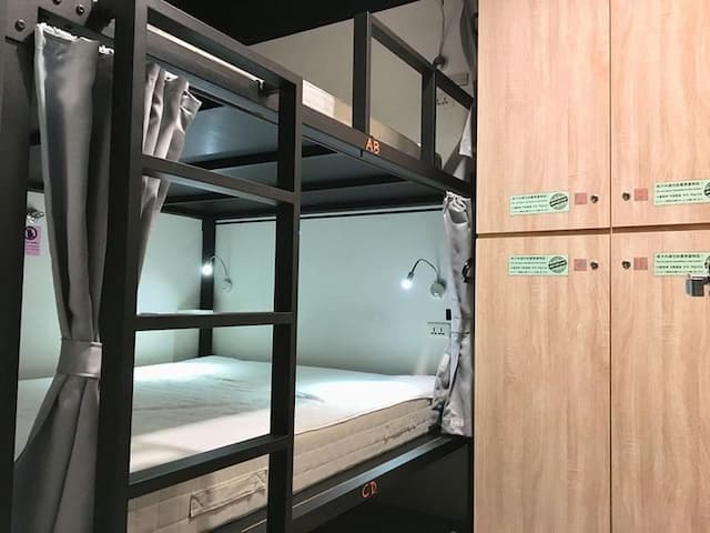單人床位有90 x 200公分, 並配有獨立閱讀燈及附鎖頭的私人儲物櫃
